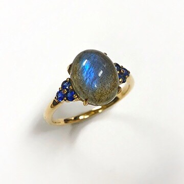 K18ラブラドライトリングをカナダのラブラドル半島で採掘され始めたのでこの名前で呼ばれていて、光を当てると青く輝きます。外れた石をリングに留め直すご依頼を頂いていました。本日納品させていただきました。誠に有難うございます。